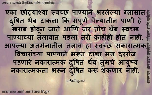 अजून एक चुकी अशी होते ज्यामध्ये इतक्या नकारात्मक विचारात देखील सकारात्मक विचार कल्पना येत असतात पण त्या प्रचंड प्रमाणात असलेल्या नकारात्मक विचारांमुळे कल्पनांमुळे अडगळीत टाकले जातात. संधी आयुष्यात येत असते ती तुम्हाला जेव्हा येईल तेव्हा पकडायची असते आणि ती जे पकडतात तेच चमत्कारिक आयुष्य जगतात. अगदी शून्य काय वजा मधून लोकांनी अवकाशात झेप घेतली आहे ज्याला इतर लोक भाग्यशाली असे म्हणतात.